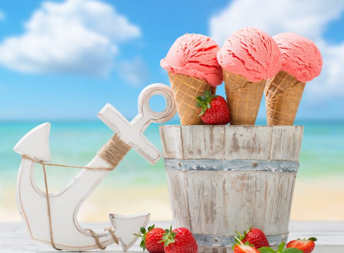Wallpaper ice cream, strawberry, anchor, delicious, 8k, Food