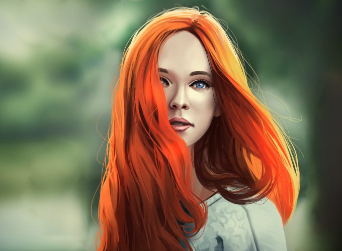 Wallpaper girl, red, hair, 4K, Girls