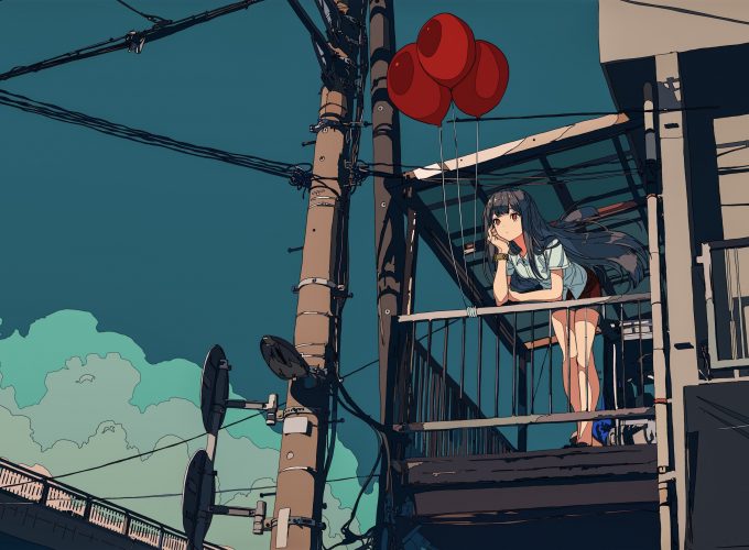 Wallpaper Balloon, Girl, Telephone Pole, 4K, 6K, Art