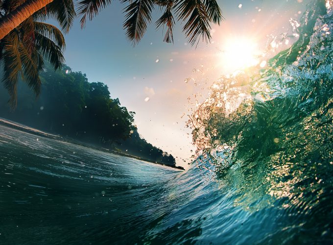 Wallpaper ocean, waves, palm, 5K, Nature